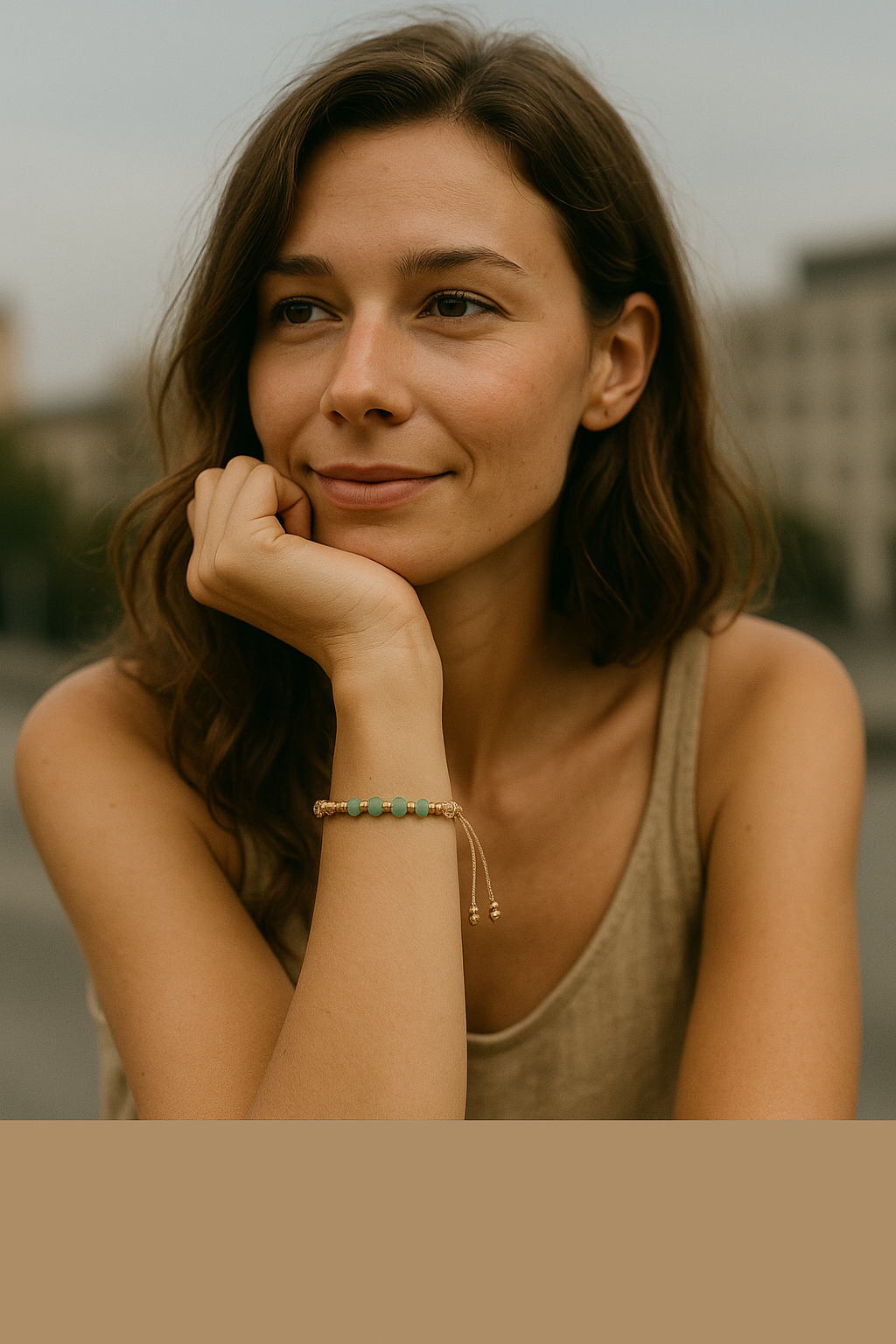 Experience the essence of summer in a single bracelet. Inspired by lush botanical gardens and sun-kissed festival grounds, the FERN FACETS wrap captures nature’s vibrant energy in every knot. Hand-crafted from ultra-fine, sand-tone cord and woven in our signature Spiral Mini style, this delicate piece features faceted green aventurine cubes framed by gleaming brass “diamonds.” Whether you’re dancing barefoot in the grass or strolling through weekend markets, let FERN FACETS be your everyday reminder of beauty, balance, and boundless adventure.
